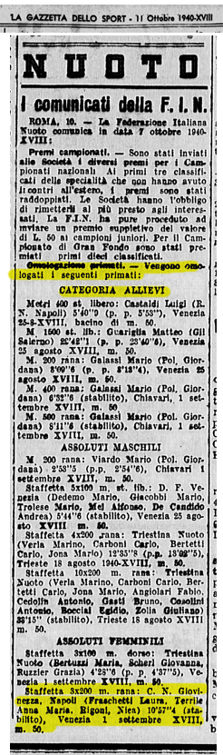 3x200 rana: Laura Fraschetti, Anny Terrile, Nica Rigoni 10'55"4