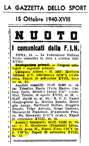3x100 rana: Laura Fraschetti, Anny Terrile, Nica Rigoni 5'04"4